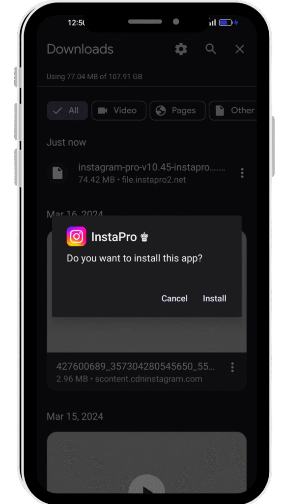 Here are 4 simple steps to install Instapro APK v12.77 from Instaprofree: